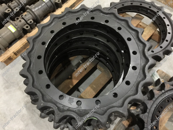 1033091:Звездочка является ключевым элементом ходовой части — перематывает гусеницу, преобразуя свое вращение в поступательное движение механизма. Деталь представляет собой колесо с зубьями, которое цепляет гребни гусеничной ленты и проворачивает ее. Крепится гайками и шпильками к фланцу ведомого вала конечной передачи. Купить запчасть можно в нашей компании в Краснодаре или заказать с доставкой в другой город РФ. У нас выгодные цены, квалифицированные сотрудники помогут с выбором и оформлением заказа.